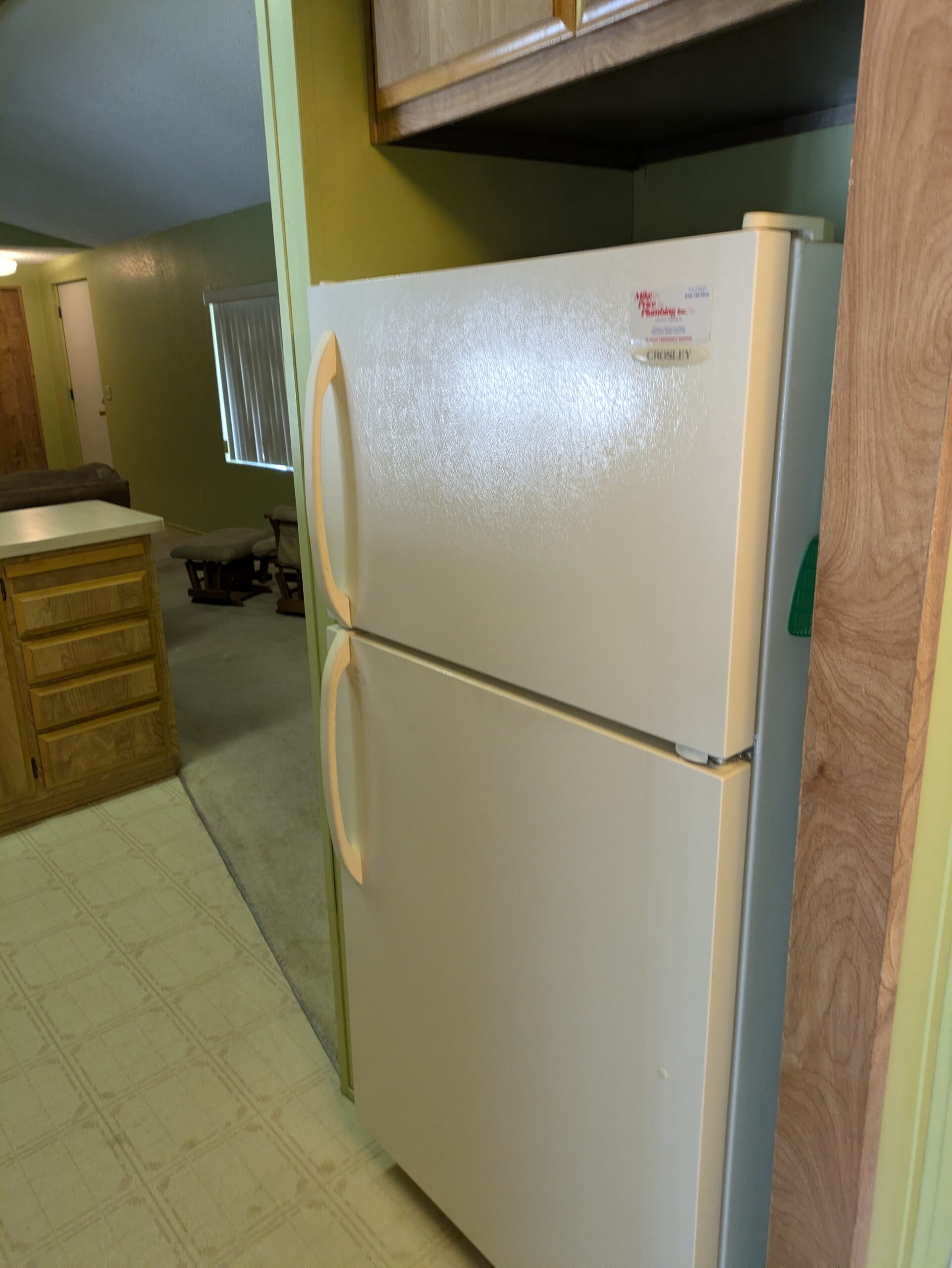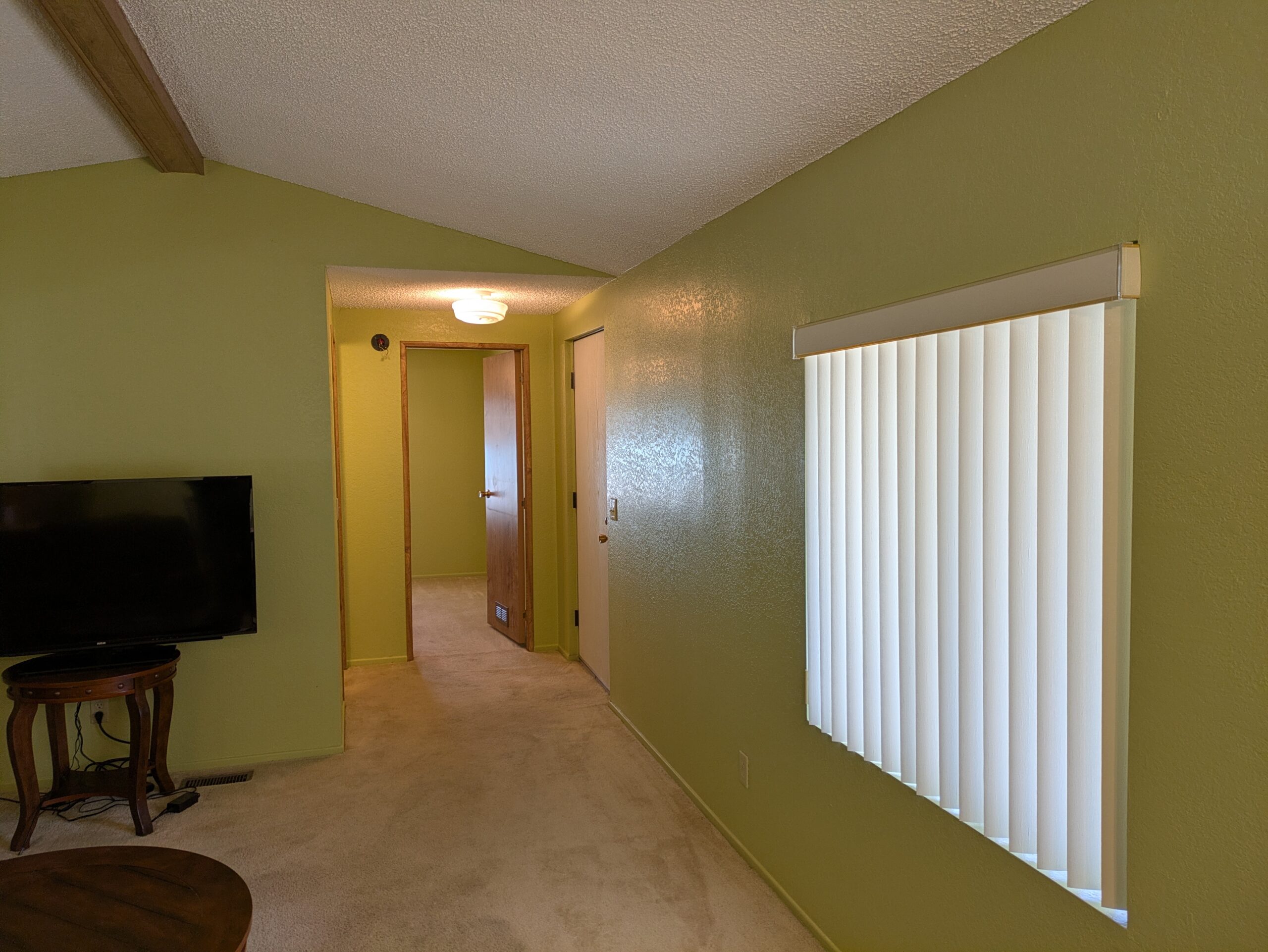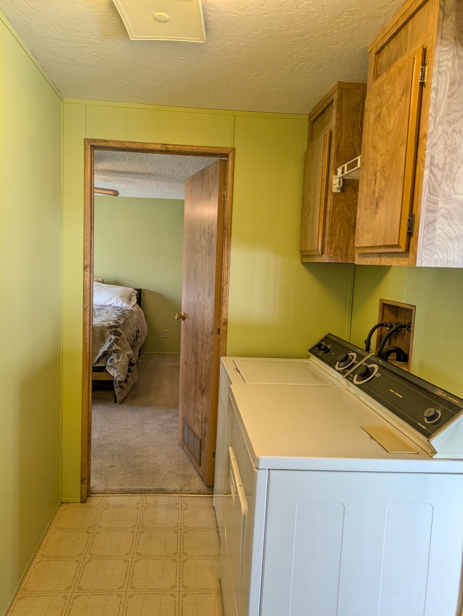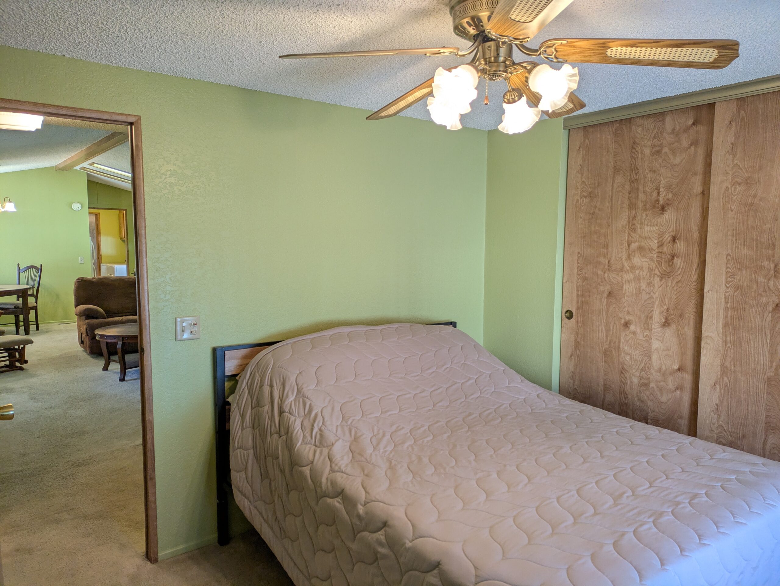 The utility room opens directly to the covered carport and includes a Maytag washer and dryer, while additional features throughout the home include a satellite dish, ample storage, window coverings, carpeting in the living room and bedrooms, and durable vinyl flooring in the kitchen. Outside, enjoy a relaxing front deck and a spacious 14’ x 64’ covered carport, ideal for parking and storing river or desert toys, making this property both functional and move-in ready.